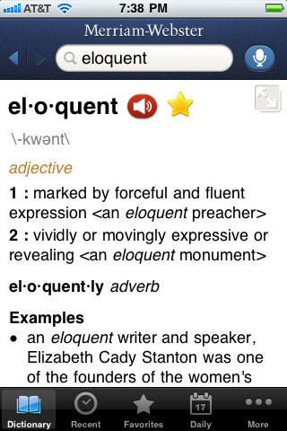 This is a great app for individuals with spelling problems allowing them to speak a word for look up in the dictionary!