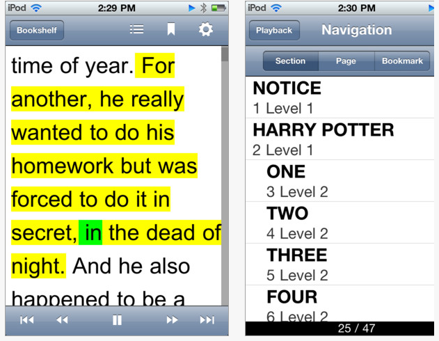 Read2Go App – Bookshare’s mobile app for iPod and iPad. Read2Go allows downloading Bookshare books directly to the apps. Read2Go provides text to speech,bookmarking and along with other tools to access the books and textbooks to those who qualify (those with print disability).