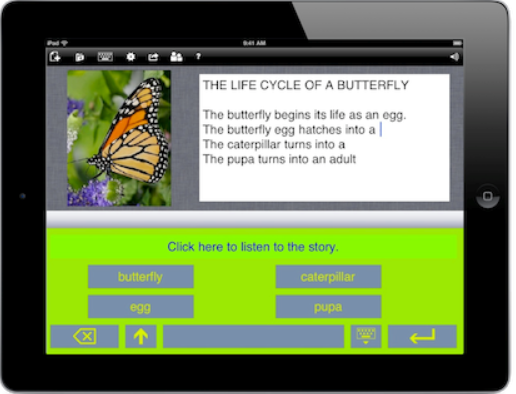 Intellipad is a great app providing access and scaffolding of writing supports for special needs students. For more information visit an earlier post dated October, 2011 on Intellipad.