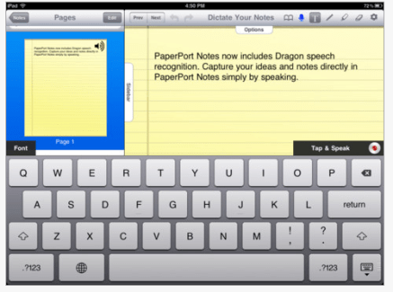 PaperPort App – This is Nuances new free digital note taking for your iPad that captures hand written notes, typed text, images, web content and audio. PaperPort Notes even allows you to take advantage of the Dragon Dictates voice recognition software produce your ideas and notes simply by speaking. This is a fabulous app previously reviewed in a previous post PaperPort App  – Dragon Dictation on Steroids.