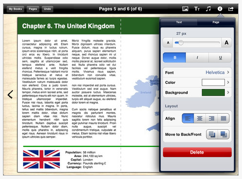 The final product book is very professional looking product that can be edited at any time. Options for the final product include emailing it or sending it to other apps that handle PDF file which is the format of the final product.  An option to send it to iBooks is provided however I did not find this operational. You can view the book within the app however beware of the trash or delete button at initial start is easy available for busy fingers.