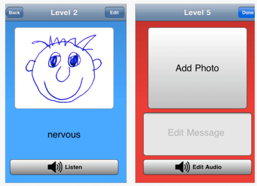 I had the opportunity to set up the 5 point scale app with a student today on an iPod Touch. It took about 15 minutes for us to review the app, revise it with personalized text and audio recordings. We kept the pictures the same, although the option of inserting your own picture, emoticon or symbol is available. I decided to record instruction in with my voice on points 2-5 as a directive from a teacher, while the student recording the 1st point with “I’m happy”. As the student becomes more independent in being able to apply those strategies recording her voice may be a good option.