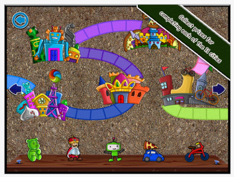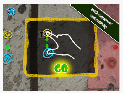 Chalk Walk app guides the user through a sequence of pathway to different cities that lead to visual motor pathways of graded difficulty. One “city”has to be completed before you can go on to the next city, requiring completion of numerous separate chalk pathways.