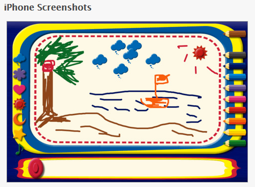 MagicBoard Mini – (for iPhone but will work on iPad in 2x mode). This app is a magna doodle on your iPhone or iPad with colored pencils and stamps for drawing.