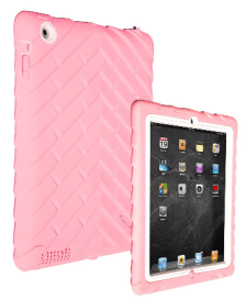 Described as rugged, highly durable case that conforms to the shape of your iPad. Constructed from soft silicone and resilient polycarbonate offering maximum shock absorption and drop protection for your tablet. Comes with a removable protective screen. No stand. Available in pink, black, white and green. Rated 4-4.5/5 from 45+ customers. $56.95.