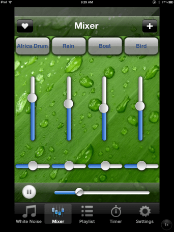 Of course there is a true white noise app featuring only white, pink or brown noise called SimplyNoise (iOS lite and full – .99 version available; Android app .99 also available) providing higher quality varieties of white noise and option of oscillation in their app. Unfortunately the light version app only provides example of their white noise however their website provides trials of all the sounds. Go to the Simply Noise website to test the noise colors. Although there is not much research information to back use of their “white noise” on their website however it is suggested for use for offices, enhancing focus, mask tinnitus, aid memory among others. They offer their SimplyNoise tools on their website for use on the computer for work situations.