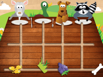 The home screen offers 17 different puzzles – 11 animal and fruit/veggie themed plus three Halloween and three Christmas.