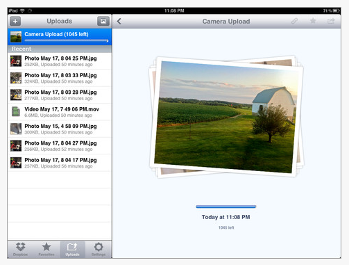 Dropbox  is an invaluable workflow service supporting file and media sharing between devices however dependent on Wi-Fi connectivity.