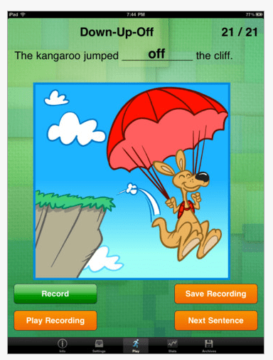 When an incorrect answer is chosen, the app shows the picture of what their sentence means. The student is awarded for accurate answers with short animation clips that eventually combine for one long movie once the child completes all levels.