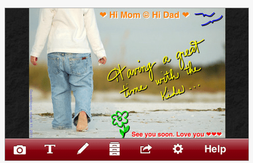 A+ Signature is an app that allows you to add text to your photo.  I like the different fonts available – there are other add-text-to-photo apps, but this one has more professional looking fonts.  There is a free version (A+ Signature lite) too, but it has fewer font options and you can only add one line of text at a time (then you need to save photo and add text to the saved photo if you want to add another line).