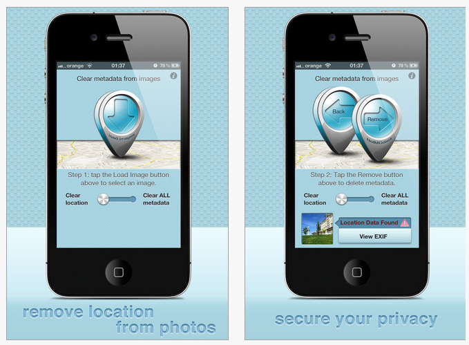 Finally, NoIMGdata is an app that will show and remove the EXIF metadata from your photo.  If you have left the Location Services “on” for your camera setting, it is possible to view the exact location (longitude/latitude) of where the photo was taken.  It is important to leave location services “off”, as leaving this information in the photo can compromise client confidentiality.  NoIMGdata allows you to check to see what data is embedded in the photo, and also allows you to remove this data from the photo.”