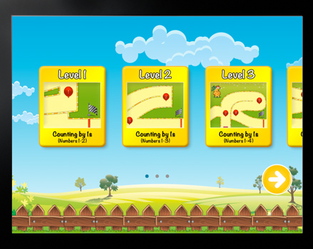 - Beginner for ages 2-4; counting from 1-10 (free) with three levels within the beginner level