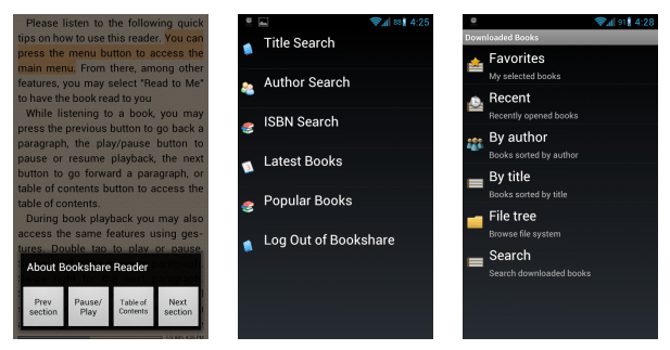 - Access and download books directly from Bookshare (must be a Bookshare member to download)