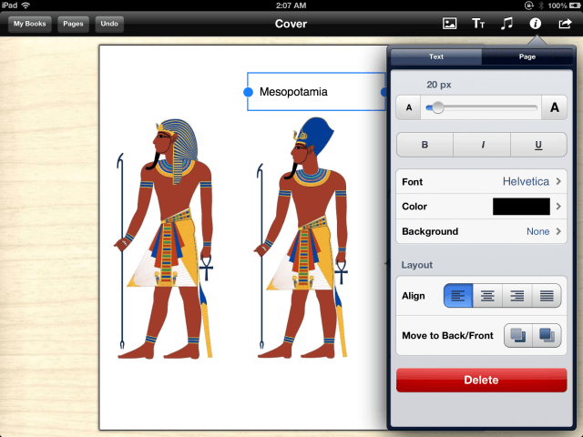 Book Creator is intuitive to use for students as well as digital immigrants. This was the first time with these students using the iPad. Importing pictures and videos from the Photos library was easy to do and offered the ability to import more than one photo as well as videos on a page. Moving images front to back is also supported when dealing with more than one image.  Different page layouts (single or double paged books) are offered along with different background colors, font and font colors for your book.