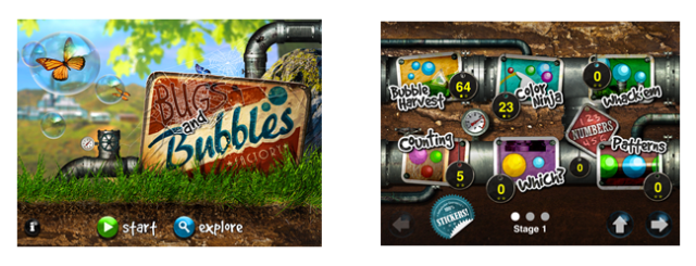 Bugs and Bubbles is an app for the iPad ($2.99) from Little Bit Studio, LLC, the same creators of the infamous and wonderful Bugs and Buttons.  The graphics and amazing attention to detail in this app are truly some of the best available.  This app has 18 games to choose from and various levels in each game that automatically adjust the more you play.  Kids of all ages love to pop, pinch and interact with these gorgeous bubbles.
