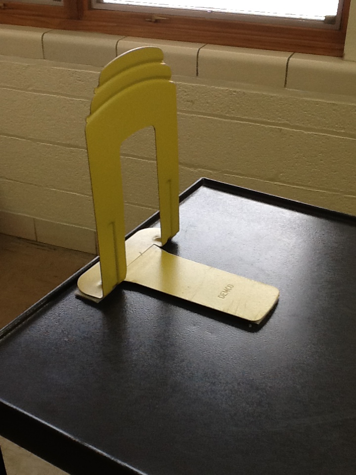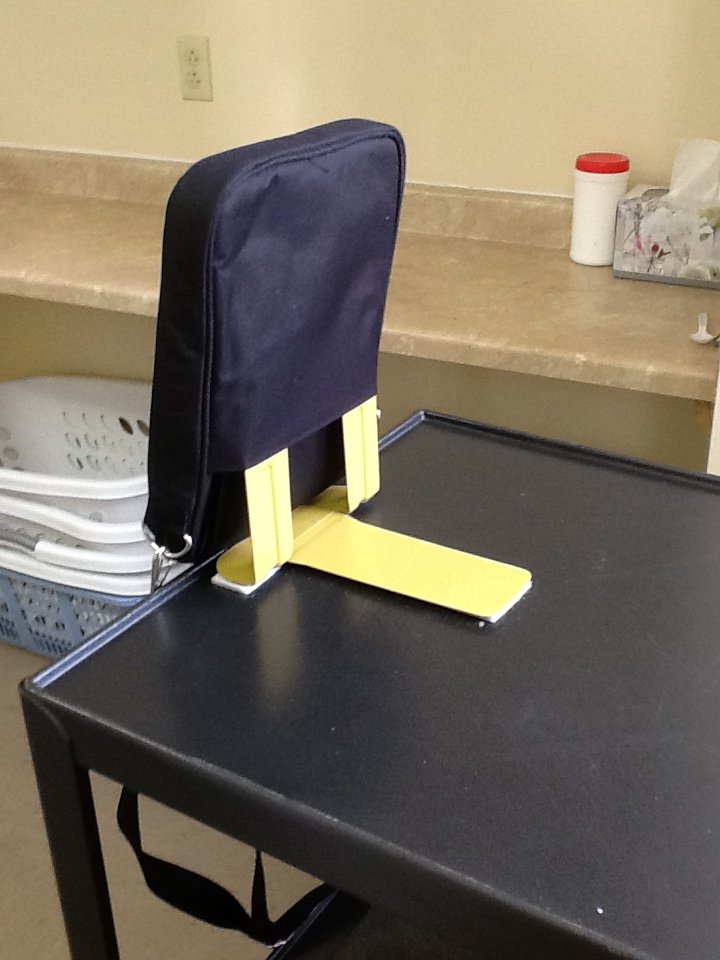2. Large book stand repurposed from our library with heavy duty velcro to secure it to the cart.