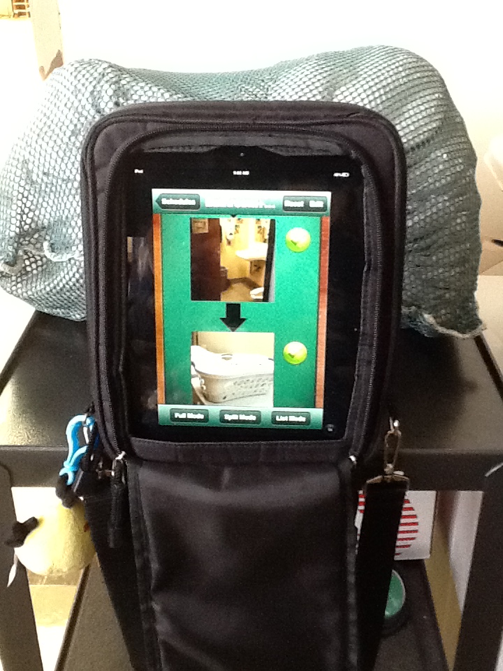 A pocket on the back of the bag allowed the cover to be managed and tucked away allowing easy viewing of the screen (see image below). It also provided a quick easy method of adapting the iPad to the cart (see below)!