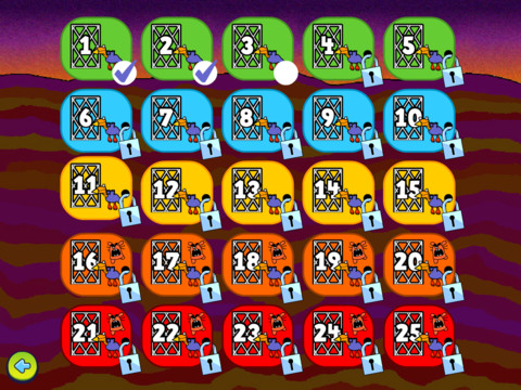 Twenty five levels of progressive difficulty are available however any user can go back to any level to repeat a level. Tunnel Trouble does not enlist users. If needing to track progress of different users, annotating individual users or taking a screen shot of the users last level would be necessary.
