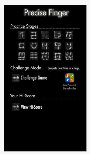 Motion of a finger pic2In the challenge mode you compete in 5 pathways or stages to try to beat your time. Hi-Scores are recorded in the app to compare a score highest scores or your total score of 5 stage challenge.