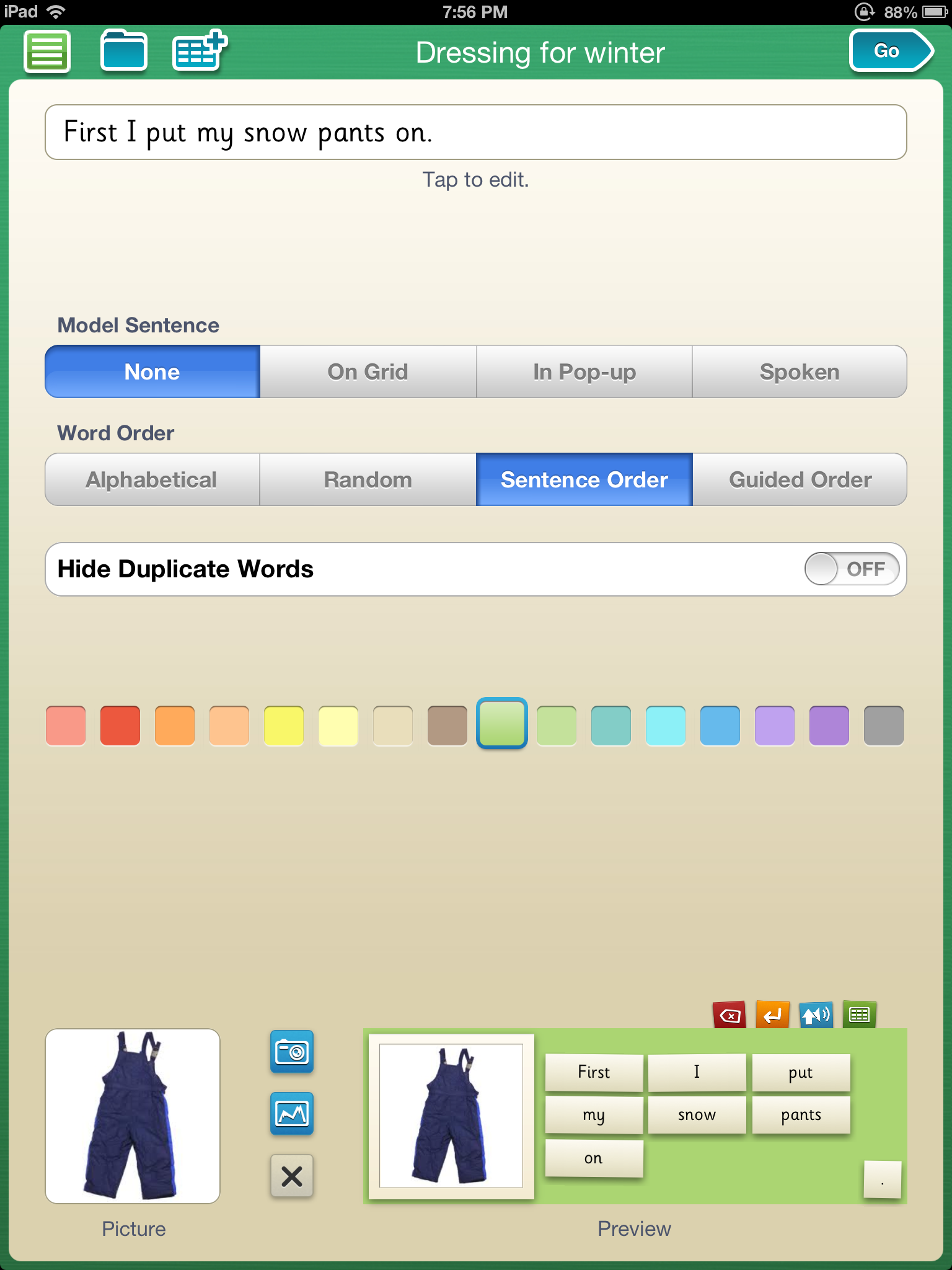 Here is a video of Clicker Sentences app and some of the features it provides: