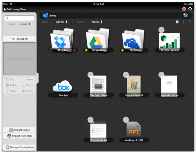 iAnnotate app for iPad provides many features which appears somewhat overwhelming initially, however customization of its tools can help reduce the visual overload with for the user. Along with annotation of PDF files, highlighting and numerous other writing/typing tools, iAnnotate provides file management within the app and ability to sync with many services (Dropbox, Google, Box, Windows SkyDrive).