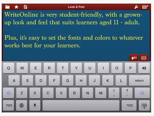 With features similar to their Clicker Docs app, WriteOnline app has a more mature look for middle school or older students using the iPad: