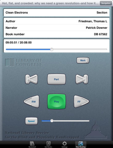 The BARD Mobile App developed by the Library of Congress is the app managing files for those registered for the National Library Service for the Blind and Physically Handicapped (NLS). Seeing the apps interface, shows it looks very similar to the actual readers supplied by the NLS.