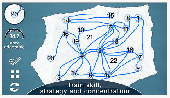 Skill Training app for iPhone and iPad (2.99) is a visual motor/spatial reasoning app that requires drawing, motor planning and spatial problem solving activity. Created by the same developer as the Skill Game app, it is appropriate for upper elementary ages through adults.