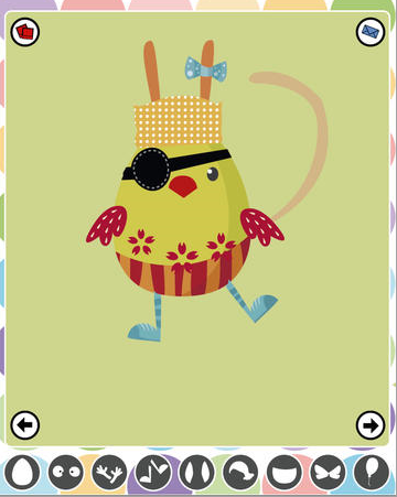 DressUp Easter Eggs – for iPad featuring clothes, body parts and other embellishments (flowers, butterflies, etc.) to add on an egg. Share via email or save to your photo library. Just for fun and free only today, April 13 (I believe).