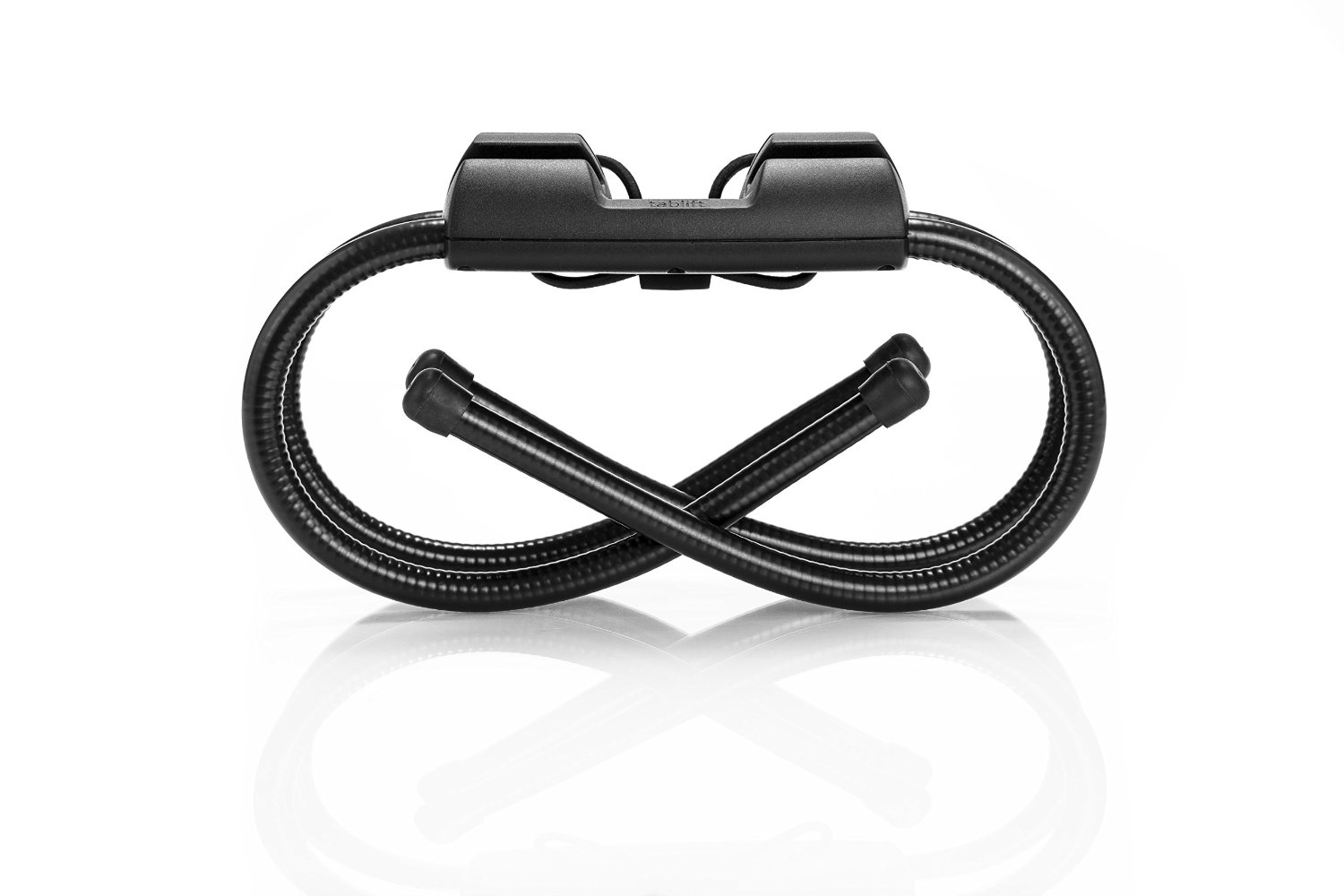 The Tablift Stand has flexible (gooseneck – like) legs for ease of positioning, storing and toting around. Although it has substance (weighs 1-2 pounds), it packs up pretty small offering portability, or small storage space if needed.