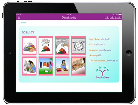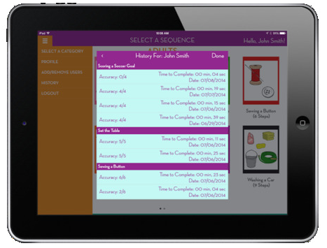 Multiple users can be entered into StepbyStep app. Results of their performance is provided with a picture of their completed task sequence.