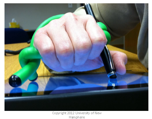5. Sugru, a modeling material that is very sturdy, can help with applying handles and grips on styluses as needed. Here is one created for a client – it was preferred by her over all other styluses trialed. Sugru is available in different colors. A very handy material.